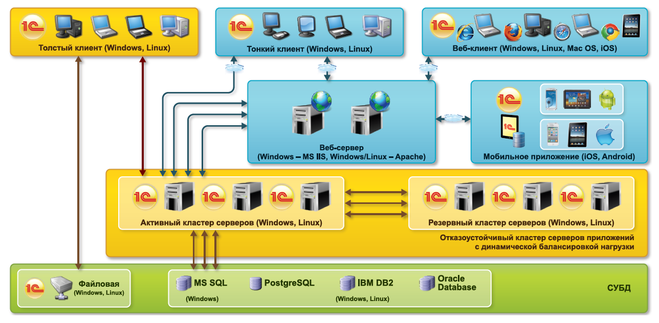 - гибкая и производительная современная платформа «1С:Предприятие 8.3», поддерживающая работу через Интернет, в том числе «облачные» технологии и работу на мобильных устройствах;
