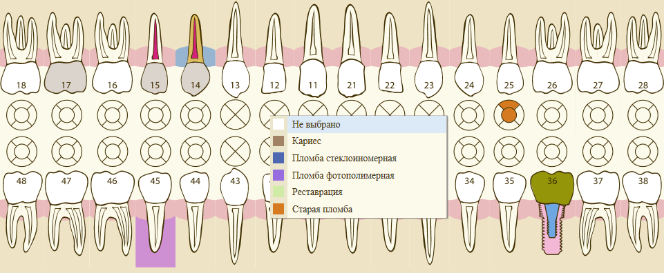 - Графическое представление зубной формулы